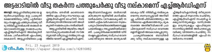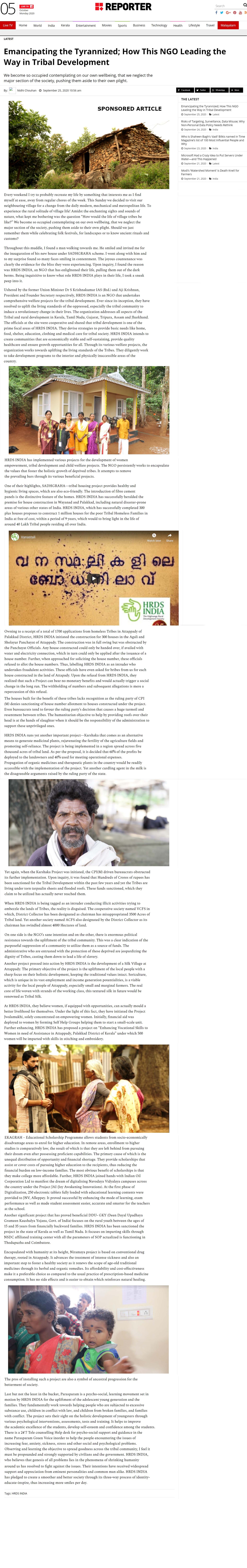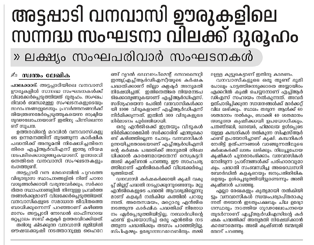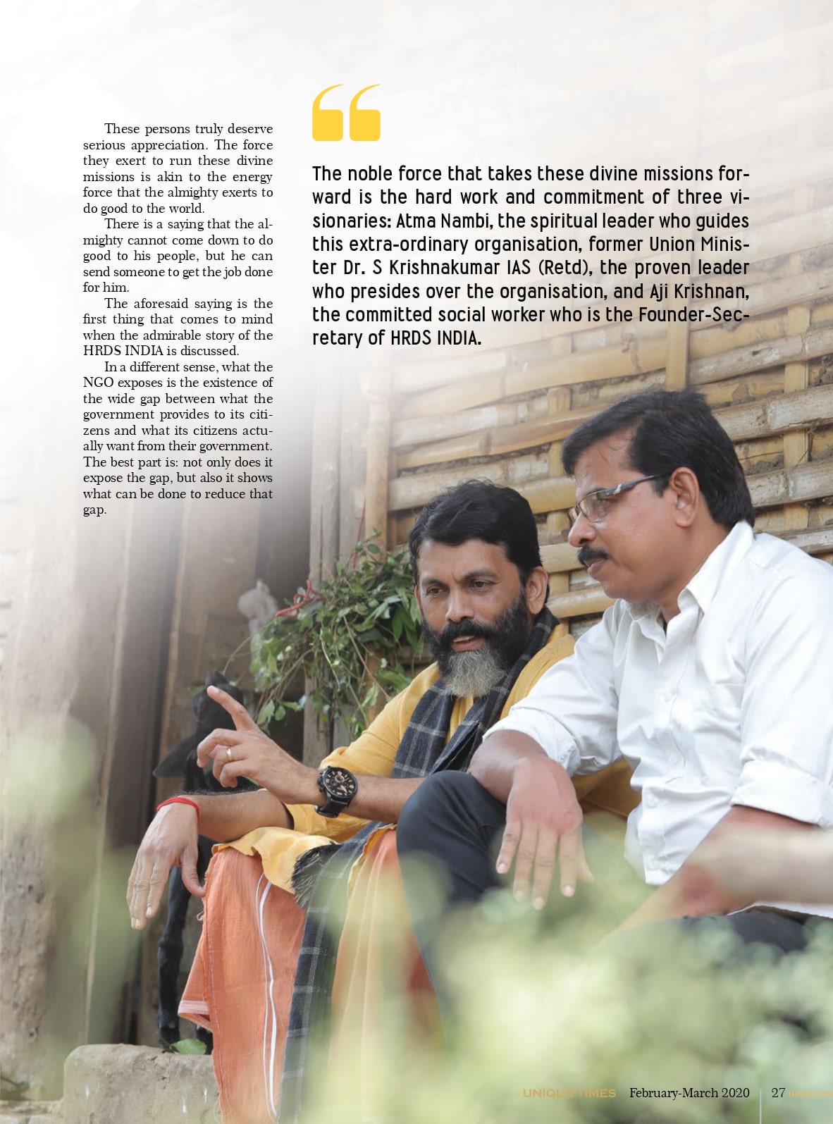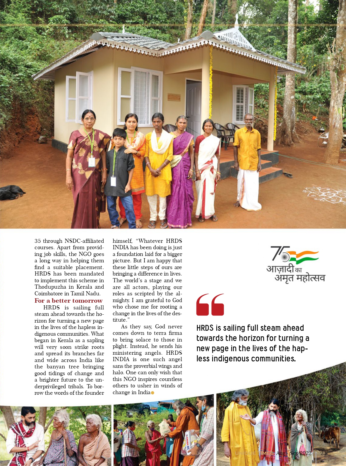 to complete 1,000 houses in Attappadi in the first phase alone,” he said. HRDS India mobilises resources from CSR funds of corporates.